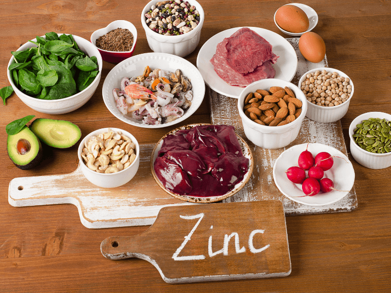 Các nghiên cứu cho thấy rằng thực phẩm giàu kẽm có thể hữu ích trong việc ngăn ngừa và điều trị mụn. Thực phẩm giàu kẽm có trong: